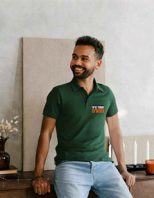 Beclassy Black Polo T-Shirt – "IT'S TIME TO WORK"
