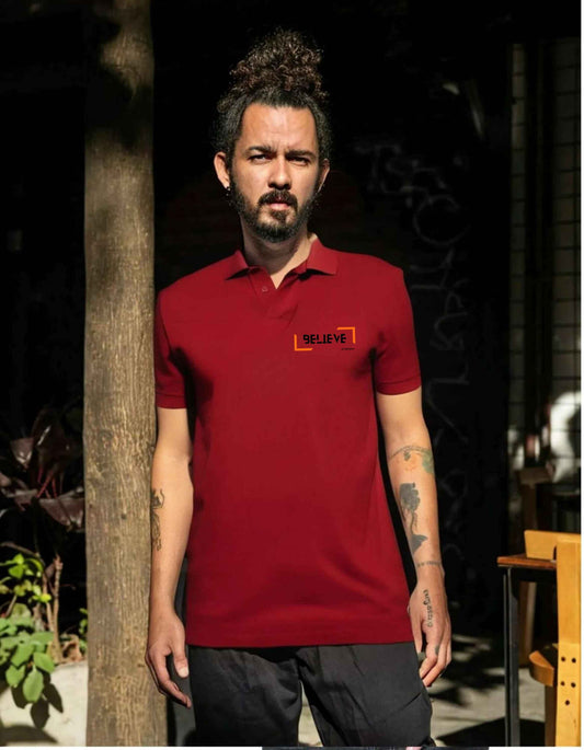 Beclassy Bottle Green Polo T-shirt- "BELIEVE"